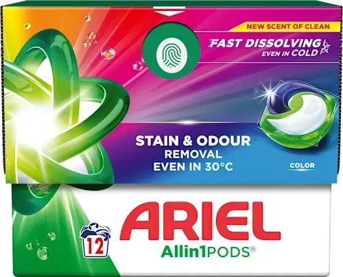 Ariel prací kapsle Allin1 Color odstraňují odolné skvrny a zápach dokonce i při 30 °C. Kapsle na barevné prádlo jsou navrženy tak, aby fungovaly skvěle i při praní na nižší teplotu, rychle se rozpouštěly i ve studené vodě a poskytovaly dokonalé výsledky. Vyzkoušejte kapsle od značky Ariel, které poskytují dokonalou čistotu a dlouhotrvající svěžest vašeho barevného prádla