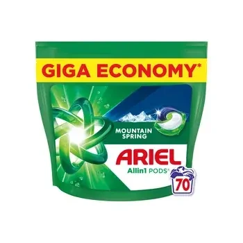 Ariel Mountain Spring Allin1 kapsle na praní přinášejí osvěžující sílu horského jara do vašeho prádla. Díky vysoce účinnému složení odstraní odolné skvrny a zápach i při praní na nízkých teplotách, již od 30 °C. Tyto kapsle jsou navrženy pro optimální výkon i při praní ve studené vodě, rychle se rozpouštějí a poskytují dokonalé výsledky bez kompromisů. S osvěžujícím vůní horského jara bude vaše prádlo nejen dokonale čisté, ale i dlouho voňavé. Doporučují je přední výrobci praček, jako jsou Whirlpool, Electrolux, Candy a Beko.