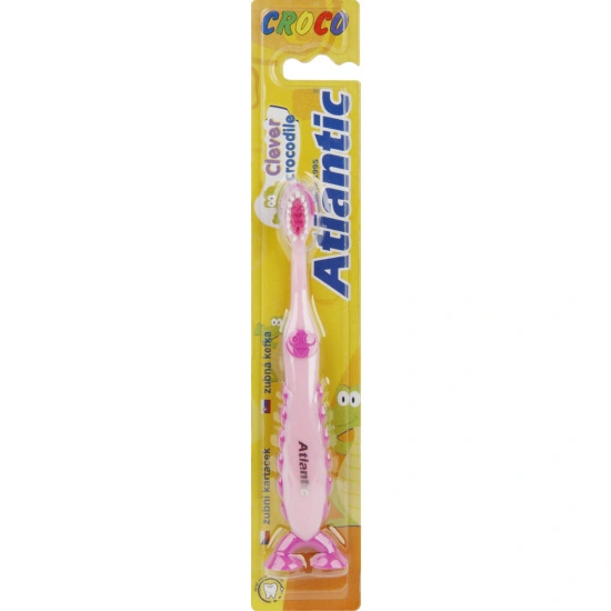 Kartáček zubní Atlantic Croco, díky speciálnímu tvaru hlavy umožňuje dokonalé a snadné čištění i v těžko přístupných místech. Vhodný pro držení dětskou malou rukou.