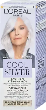 L'ORÉAL PARiS barva na vlasy Cool Silver v odstínu zářivé bílé je určena k dokonalosti přirozené šedé barvy vlasů. Neutralizuje žluté podtóny a obnovuje zářivost a lesk, zatímco dodává vlasům krásný stříbrný nádech. Složení se studenými tóny nejen neutralizuje nežádoucí žluté odlesky, ale také posiluje vlasová vlákna a zajišťuje zdravější vzhled vlasů. Obsahuje ceramidy, které posilují strukturu vlasů, zanechávají je silnější a lesklejší. L'ORÉAL PARiS barva na vlasy Cool Silver v odstínu zářivé bílé je ideální pro tmavě šedé vlasy, tento odstín poskytuje zvýraznění a obnovu lesku, což dává vlasům nádherný a přirozený vzhled.