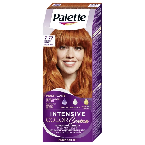 Objevte Palette Intensive Color Creme s MULTI-CARE recepturou pro dlouhotrvající a intenzivní barevný výsledek. Složení s vysoce intenzivními pigmenty proniká hluboko do vlasů a ukotvuje v nich barvu pro ochranu proti vyblednutí. Výsledkem je tak dlouhotrvající intenzita barvy po několik týdnů a 100% krytí šedin.