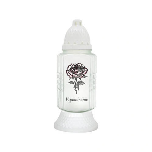 Elegantní hřbitovní svíčka ve skle s jemným dekorem růže je důstojným symbolem tiché vzpomínky. Díky své výšce 27 cm je stabilní i dobře viditelná. Obsahuje parafínový vklad o hmotnosti 80 g, který hoří přibližně 24 hodin. Praktické plastové víčko chrání plamen před větrem a deštěm. Vhodná pro umístění na hroby, památníky nebo pietní místa během celého roku.