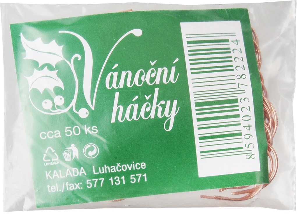 Vánoční závěsné háčky - poměděné, délka 3,5 cm. Balení obsahuje 50 ks.